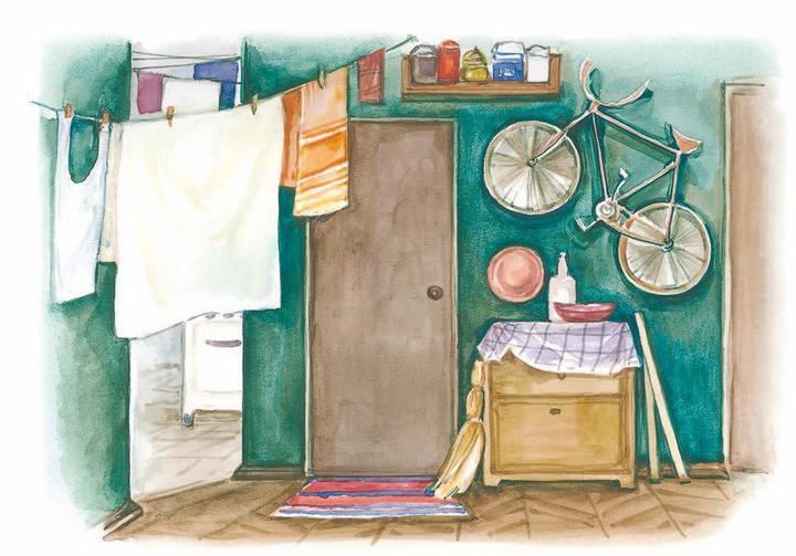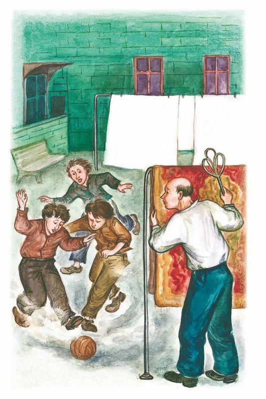 В общем коридоре на гвоздях висели жестяные тазы и велосипеды, а кроме того, были натянуты веревки. На этих веревках постоянно сушилось чье-нибудь белье. Вообще-то белье полагалось развешивать для просушки во дворе, где для этого были установлены специальные металлические столбы с крючками, а еще стояла перекладина для выбивания ковров.