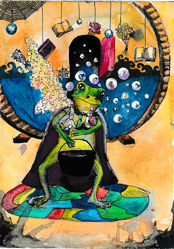 Практика, как обычно, проходила на тренировочной арене. Все ученицы собрались после перерыва и уже ждали учителя. И вот прозвонил колокол, а в зал вползла жаба. Теперь уже ученицы не так испугались, а жаба превратилась в бабочку с прозрачными крыльями. Все удивлённо ахнули и начали между собой тихо шептаться. Но бабочка-жаба стала говорить, и наступила тишина.