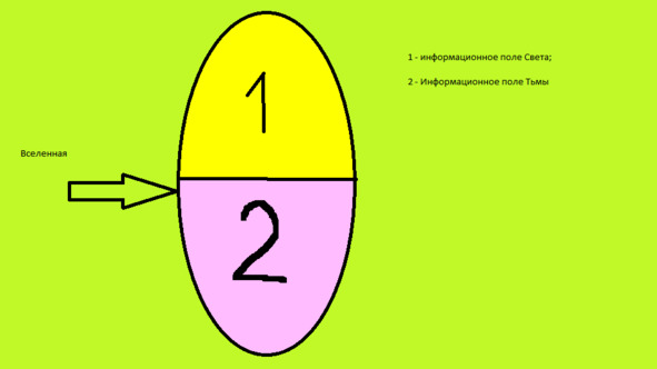Как вы знаете, всё в этом мире состоит из энерго-информации. Любая мысль это тоже энерго-информация, а мысль это Сила. Я говорю об оформленной мысли. Она окутывает всё Бытие целиком, как плотный, так и «тонкий» миры. Конечно же, нет строгого подразделения на информацию Света и Тьмы, они переплетены между собой, и ваше дело разобраться, где информация от Света, а где от Тьмы. Но условно это можно изобразить схемой.