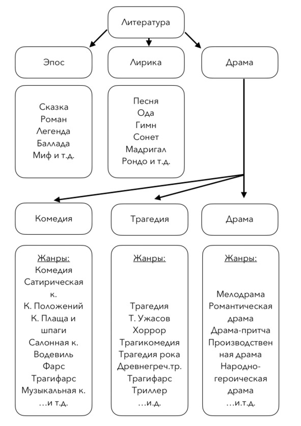 Разложив по полочкам всю имеющуюся на данный момент информацию, можно выстроить подобную схему для классификации того или иного литературного произведения:
