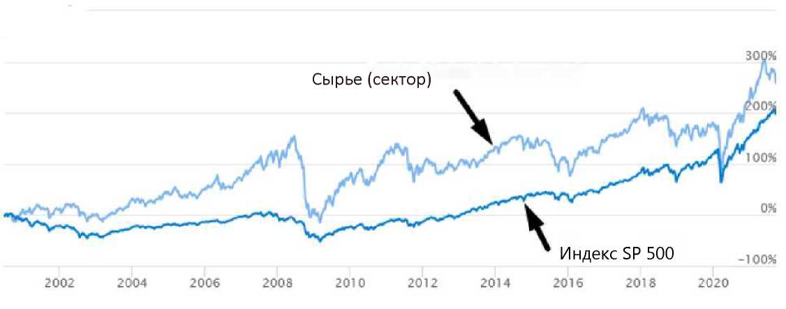 Сектор «Сырье» включает в себя компании, специализирующиеся на нахождении, добыче и обработки сырья.