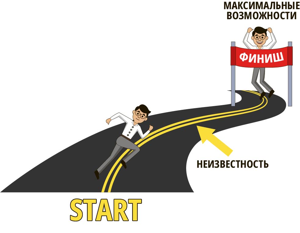 Зоне комфорта противопоставляется зона риска. Это место, в котором скрывается наибольшее количество возможностей и в которое нам страшнее всего идти, поскольку там все крайне смутное и неопределенное. А неопределенность это то, что нас сильно пугает даже при условии, что мы осознаем, чего можем добиться, поборов свои комплексы.