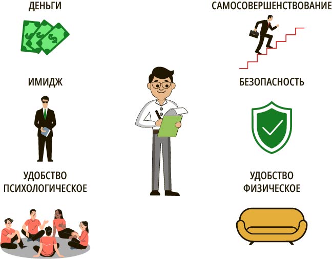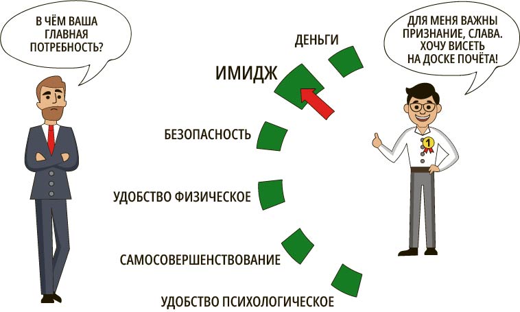Обычно таких ведущих потребностей у человека две или три, именно они определяют его поведение и влияют на его решения.