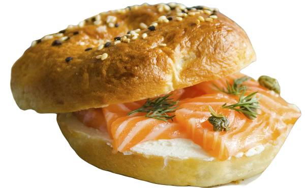 Бейгл с лососем это один из самых популярных сэндвичей Нью-Йорка. Несмотря на свою простоту в приготовлении, он обладает богатым и сбалансированным вкусом. Сэндвич по традиции состоит из свежеиспеченного бейгла, наполненного сливочным сыром и свежим филе лосося, обработанным в рассоле (без процесса копчения). Сэндвич часто дополняют каперсами, укропом и тонко нарезанным красным луком, а простой сливочный сыр можно заменить сыром с укропом и зеленым луком. И хотя сегодня этот сэндвич распространен по всей территории Соединенных Штатов, однако гурманы-пуристы выбирают именно Нью-Йорк, чтобы полакомиться этим деликатесом.