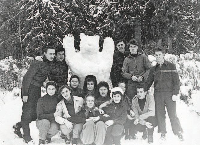 Студенты Городецкого педучилища на зимних каникулах. Михаил Треушников крайний справа (сидит). 1957 г.