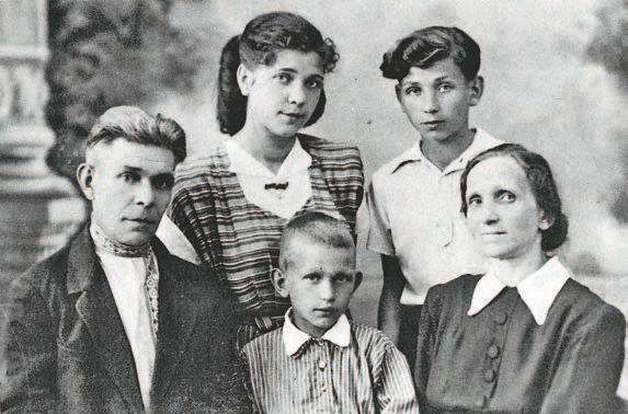 Семья Треушниковых. В первом ряду: Константин Васильевич, Анатолий, Ирина Андреевна. Во втором ряду: Елена, Михаил. Городец. 1953 г.