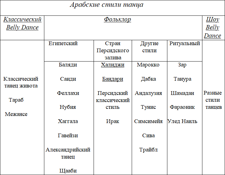 Классический танец живота в современном мире различают также по географическим районам, или, как еще называют, школам танца живота: египетская, ливанская, турецкая, пакистанская, марокканская и другие более мелкие, но не менее значимые.