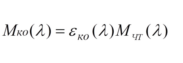 where: ελ1mk0 is the spectral coefficient of thermal radiation of the controlled object at wavelengths λ1m; Mλ1mcht is the spectral density of the energy luminosity of the black body at wavelengths λ1m; τλ1mc is the transmittance of the atmosphere at wavelengths λ1m.
