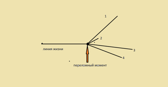 Пояснения: 1, 2, 3, 4 возможные исходы в судьбе человека.