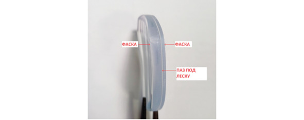 На рис. 14 для безободковых моделей фацет абсолютно плоский (вернее его там просто нет), отсутствует паз для лески. Имеются только передняя и задняя фаски, которые лучше снять (притупить) во избежание сколов, и чтобы клиент не поранился.