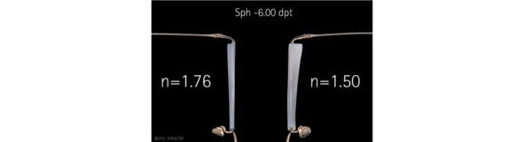 Рис. 18. Сравнение линз в очках с разными индексами