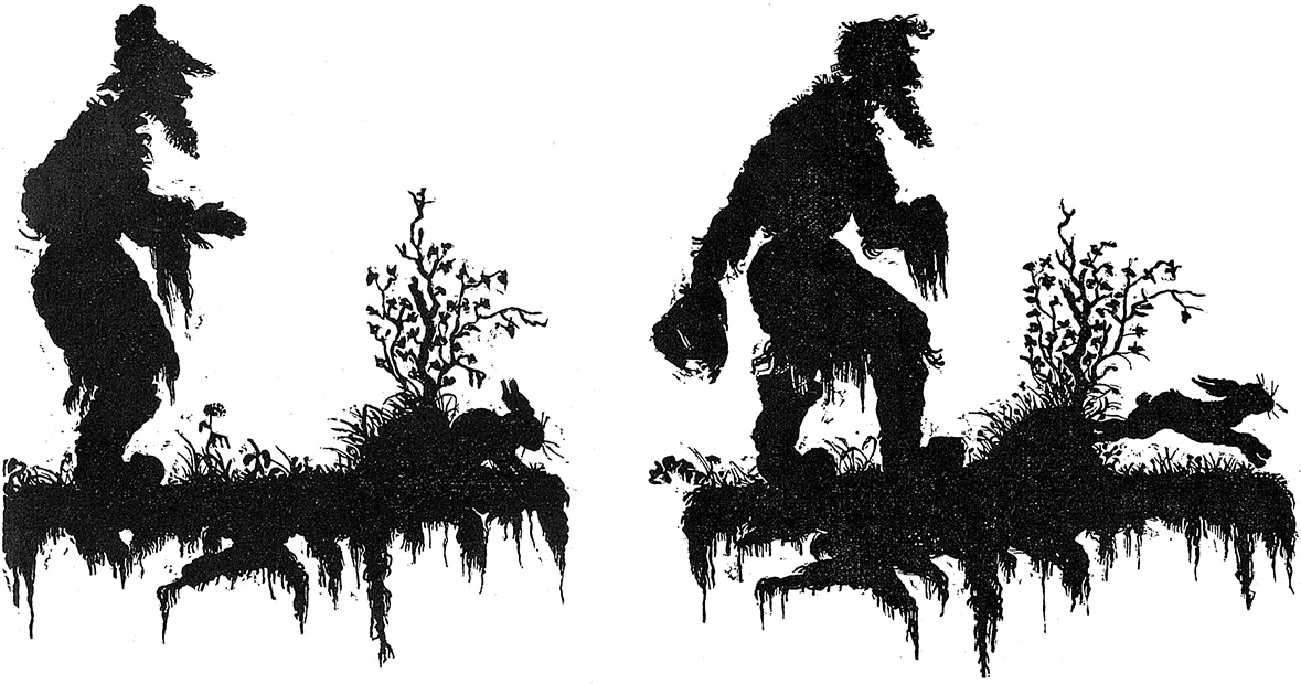Еще одной культурной «средой обитания» зайцев в эти же годы является детская литература. Детский фольклор помнил о зайцах с давних пор, упоминая о зайчиках в сказках «Рукавичка» и «Колобок». В первой из них зайчик залезает в рукавичку с прочими зверьми, пока их не прогоняет собака деда, потерявшего рукавичку. Во втором заяц намеревается съесть Колобка, но, заслушавшись его похвальбой, остается ни с чем[155]. Теперь рассказы о зайцах полнятся новыми приключениями. Главным из них стало коротенькое стихотворение Ф. Б. Миллера, плодовитого поэта и переводчика, из цикла «Подписи к картинкам (для детей первого возраста)» (1851):