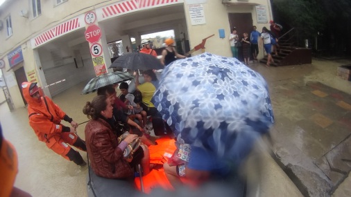 Много вызовов было. В основном выносили лежачих людей из домов, эвакуировали на носилках. Нам поступил вызов о том, что на автомобиль упал забор. Именно в этот момент около машины находилась женщина и ее придавило. Когда мы приехали, ей уже помогли выбраться соседи. Мы на себе принесли к ней врача, он оказал ей помощь, подготовил к транспортировке, и потом мы ее понесли в носилках к Скорой, которая стояла неподалеку. А эта женщина хозяйка гостиницы, из которой выезжали люди, торопились в аэропорт. Мы их вывели из двора, потому что воды было очень много где по грудь, где по шею, а на дороге уже по пояс. На дороге с этой семьей мы и попрощались, и пошли дальше работать. И что то заставило меня вернуться. Чутье что ли. Не по себе стало. Я подошел к ним, забрал вещи, а мужчине говорю, помогай жене и идите за мной. Они шли прямо за моей спиной.