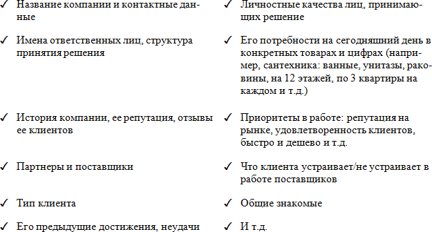 А теперь уже традиционно вопрос: «Какую информацию необходимо собирать о клиенте на этапе подготовки к продажам?»