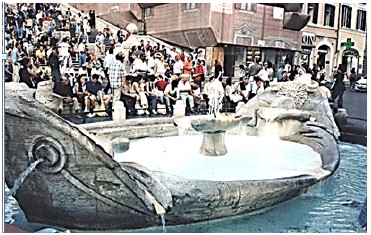 Фонтан «Лодочка» находится на площади Испании, где три составляющих фонтан лестница и церковь, как считается, представляют элегантную композицию Рима и центр притяжения туристов. Недаром в близлежащих домах проживали такие знаменитости, как Байрон, Лист, Гёте, Стендаль