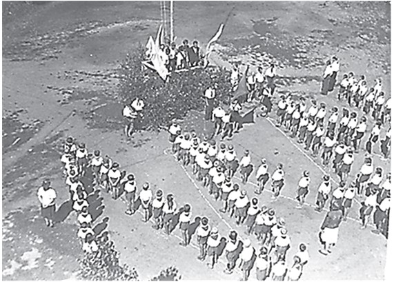 Линейка построение пионеров перед трибуной