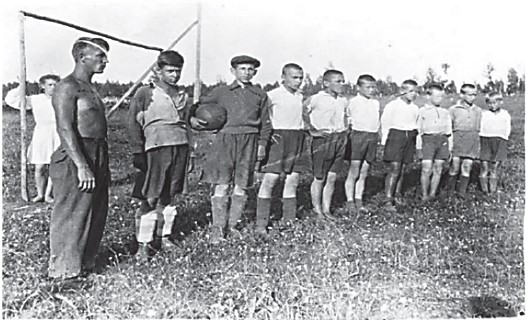 Нет, мы, конечно, играли и в самый настоящий футбол, но это было уже позднее. Об этом свидетельствует чудом сохранившаяся фотография нашей школьной команды, где мы стоим на фоне, с позволения сказать, футбольных ворот из жердей, без сетки. И какие сетки у самодельных ворот в то время?!