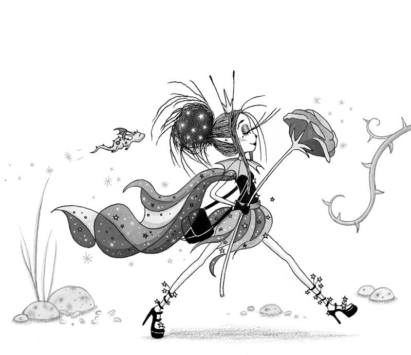 Наконец Виктория-Стич почувствовала, что утомилась. Она залетела уже очень далеко, почти к самой пограничной стене, и лес под ней выглядел совсем уже диким, почти необитаемым. Нигде не было видно ни домиков, ни аккуратно вымощенных галькой дорожек, а берега ручья заросли высокими цветущими травами. Поёжившись от удовольствия, что она наконец-то совсем одна, Виктория-Стич приземлилась на большой валун у самого берега и, сбросив одежду, натянула чёрно-белый полосатый купальник.