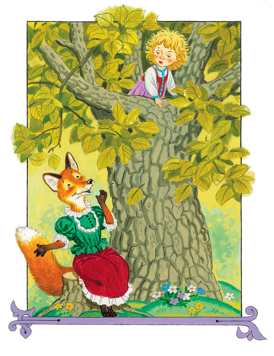 Стала лиса вокруг дерева обхаживать, на девочку Снегурочку поглядывать, с дерева её сманивать, а девочка не идёт.