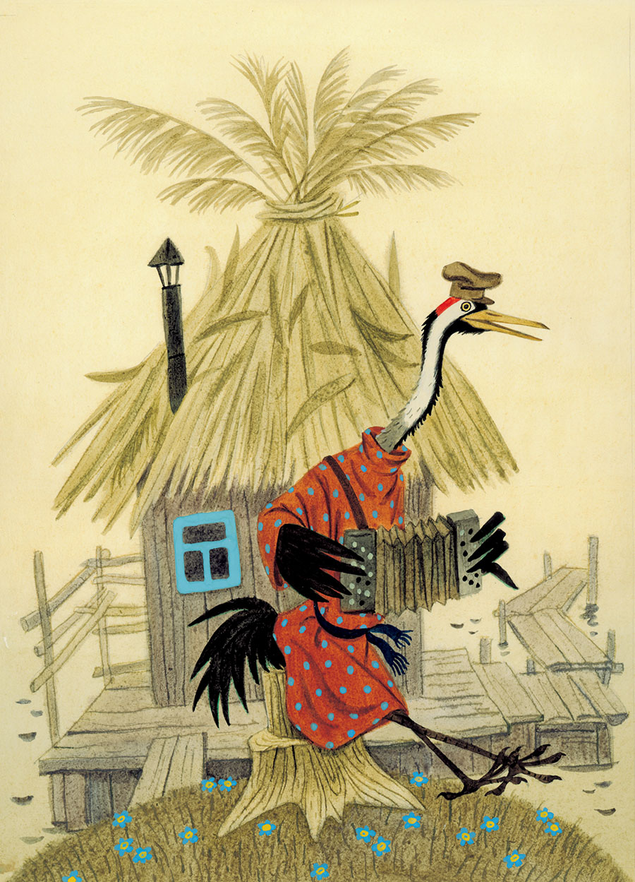 Пошёл журавль тяп-тяп! Семь вёрст болото месил, приходит и говорит: