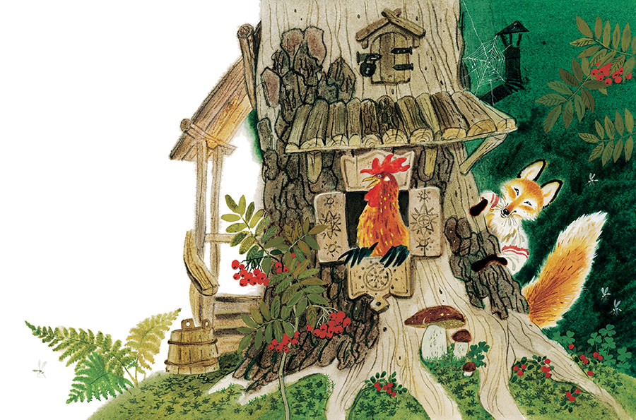Петушок и выставил головку в окошко. Лиса схватила его в когти, понесла в свою нору.