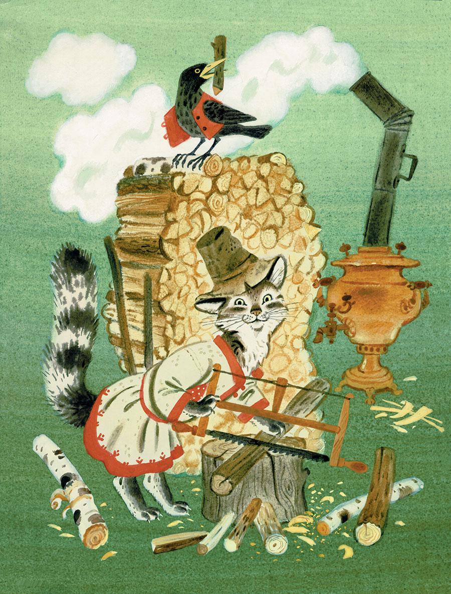 В другой раз кот и дрозд пошли в лес дрова рубить и опять наказывают: