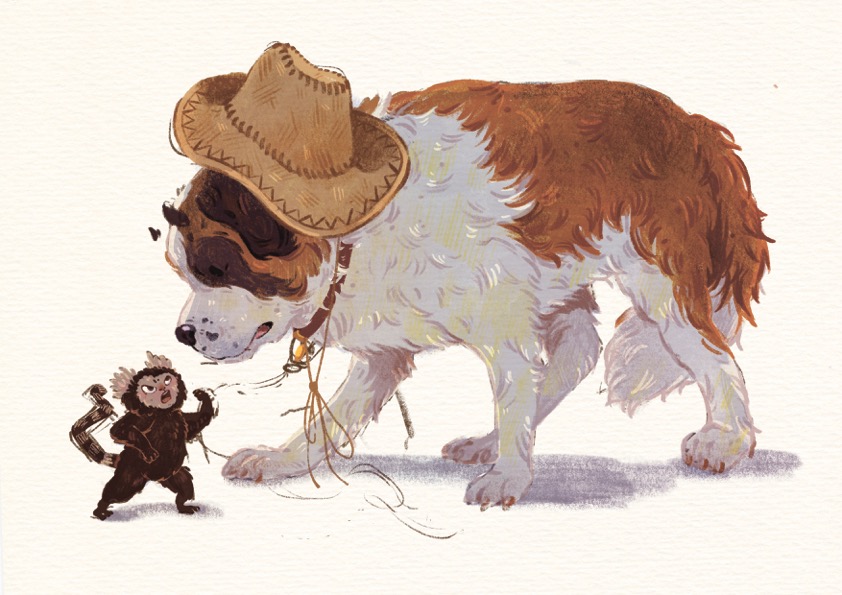 Внезапно обезьянка подскочила к псу, схватила его за ошейник, резко притянула к тебе и злобно зашептала в самый нос: