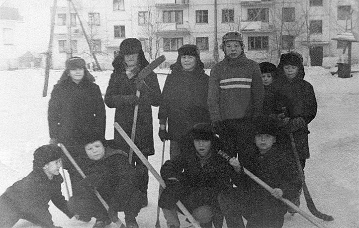 Самый низовой уровень был дворовый. Моя команда (я так говорю для краткости, потому что это была просто группа ребят из одного двора примерно одного возраста, мы все дружили) органично начала входить в это хоккейное движение. «Катки зимой для детей заливали работники жилищно-коммунальных хозяйств на специально отведенных площадках, вспоминает житель Первого микрорайона, мой соратник хоккеист О. Кулаков. Фактически же ледяные поля были почти в каждом дворе. С наступлением холодов их заливали сами подростки и их родители».