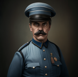 В просторном зале сельского клуба с изящными колоннами и большими окнами, закрытыми плотными занавесками, горел яркий свет. На сцене стоял Инспектор в большой фуражке с золотистым козырьком и красной кокардой в виде скрученного в восьмерку лунного пейзажа. Он был одет в ярко-синий китель с черными пуговицами. Он стоял словно каменная статуя и только зрачки глаз показывали, что перед вами живой человек.