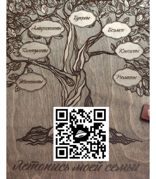 Чтобы ознакомиться с Древом нашего Рода, можно отсканировать QR-код, который перенесет вас в папку на Яндекс диске, где собраны наши генеалогические деревья. Древо перед просмотром необходимо скачать и тогда оно будет видно в хорошем качестве.