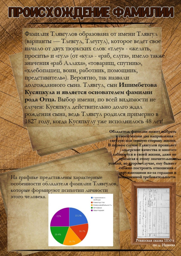Отцовское имя самый распространенный вариант получения фамилии. Как я и писала ранее, большинству хватало лишь имени и отчества, когда же пришло время взять фамилию, то обычные мужики решили не заморачиваться и просто взять по батюшке. Отсюда и появились Петровы, Ивановы, Сидоровы и Давыдовы. Именно так у Рода моего отца получилась фамилия Тлявгуловы: