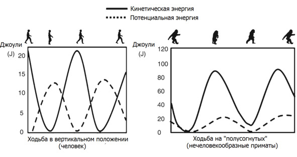 1. Перехода кинетической энергии в потенциальную энергию гравитации и обратно. Экономия энергии в диапазоне 1025%. Зависит от типа таза и позвоночника, формы и длины костей.