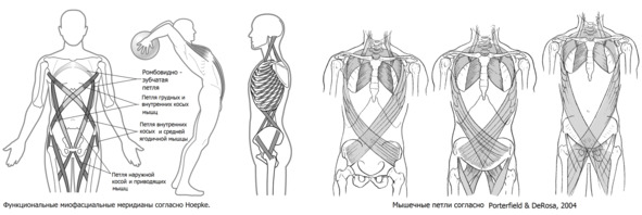 В такой системе происходит передача тягового усилия упруго-эластических компонентов с одних мышечно-фасциальных групп на другие. Такая система построена по типу хиральной системы, в которой все элементы закручены по спирали относительно центральной оси. При движении происходит чередование фаз скручивания-раскручивания с накоплением и отдачей энергии.