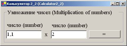 Проверяем в действии созданное нами приложение (проект) в виде программы-калькулятора, например, для вычисления произведения двух чисел: