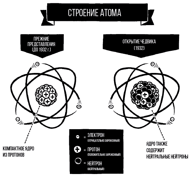 Тем временем другому ученому, который тоже продолжал опыты немцев, Джеймсу Чедвику из Англии, приходилось преодолевать одну трудность за другой. Он работал в скудно оборудованной Кавендишской лаборатории в Кембридже с громоздкой аппаратурой и слабыми источниками альфа-частиц. Наконец ему удалось раздобыть более подходящий источник: из больницы в Балтиморе ему отправили несколько почти израсходованных ампул радиоактивных веществ, использовавшихся для поражения опухолей. (Норм безопасности при пересылке почтовых отправлений тогда тоже еще не изобрели.) К тому времени, как Чедвик получил ампулы, вышла статья Жолио-Кюри. Но вместо того чтобы смириться с поражением, он критически взглянул на их работу и ее вывод показался ему подозрительным. Он просто не верил, что крошечные гамма-шарики могут сталкивать с места огромные валуны протонов. И сделал другой вывод.