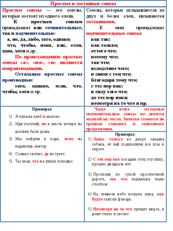 Союзы, состоящие из одного слова, являются простыми, из двух и более слов составными.