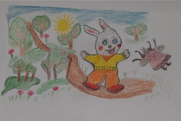 Но всё-таки смогла расправить крылья и взлететь. Убедившись, что с ней всё в порядке, муха приземлилась рядом с Хрустиком. У зайчонка тоже получилось встать на лапки. Посмотрев друг на друга, Жу-Жу и Хрустик дружно рассмеялись: «Ой, ой, ой, вот так полетали! Чуть не разбились».