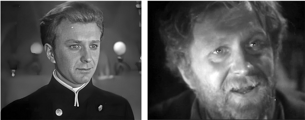 Ил. 1 и 2. Василий Кругликов (Сергей Яковлев) в Кронштадте и в Якутии. Кадры из фильма «Долгий путь» («Мосфильм», 1956, режиссеры Валентин Невзоров, Леонид Гайдай, сценаристы Борис Бродский, Михаил Ромм, композитор Юрий Бирюков, оператор Сергей Полуянов). YouTube.com