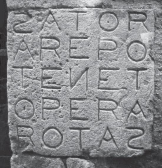 Речь идет о самом известном в мировой истории палиндроме (надписи, которая читается одинаково в разных направлениях. Простейший русский палиндром «Дом мод»). Он представляет собой заключенную в квадрат латинскую надпись