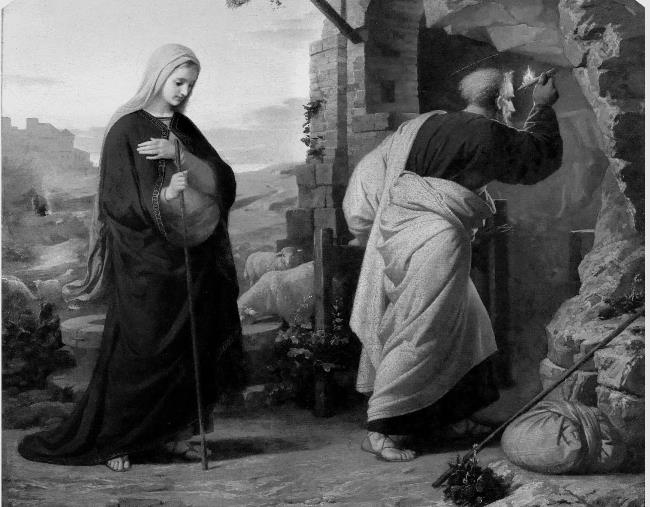 Они не могли уклониться от своей гражданской обязанности даже в связи с тем, что Мария была на последнем месяце беременности и ожидала рождения ребенка. Но в то самое время, когда они пришли в Вифлеем, туда прибыло очень много народа, который тоже принадлежал к дому царя Давида. Собралось такое большое количество людей, что не было возможности разместить всех в гостинице. Поэтому Иосиф и Мария остановились в пещере, которая являлась местом загона для скота в зимнее время. Пастухи, находившиеся рядом с пещерой, не пасли овец, а охраняли их и другой скот, который был в этих загонах, делавшихся в пещерах. Такие пещеры и теперь можно увидеть в окрестностях Вифлеема. Вифлеем [евр. Бейт-Лехем) переводится как «дом хлеба». Христос в евхаристическом смысле говорил о Себе, что Яхлебживый, сшедший с небес (Ин. 6,51). Он рождается в Вифлееме. Хлебный Колос, произошедший в Вифлееме, евхаристически напитал всю вселенную. Христос, рожденный в Вифлееме, доме хлеба, в Святых Дарах Причастия духовно окормляет всю вселенную, напояя ее потоками Истины: «Вифлеем открыл Едем; придите, посмотрим: мы нашли сокровенную пищу, придите, получим внутри пещеры (все) настоящее райское. Там виден корень неполитый, произращающий отпущение; там найден невыкопанный колодезь, из которого Давид в древности хотел пить. Там Дева, родивши Младенца, сразу утолила жажду Адама и Давида. Итак, пойдем туда, где родился юный Отрок, Превечный Бог» (Роман Сладкопевец. Икос на Рождество Христово).
