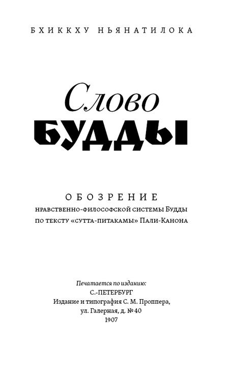 Предлагаемая книга вносит некоторое облегчение в труд основательного знакомства с вероучением Будды. Автор ее, по рождению немец, долгие уже годы, в качестве буддийского «бхиккху» (монаха), живет на Цейлоне, всецело отдавшись изучению буддизма, и, соединяя теорию с духовной практикой, углубляется в мир мыслей Будды. В настоящем своем произведении он, бхиккху Ньянатилока, дает систематически обработанное, снабженное многочисленными разъяснениями извлечение из сутта-питакам. Исходным пунктом при разработке огромного материала послужили для него, всеконечно, «четыре священные истины», корень буддизма. Автором взяты места из всех пяти «никайя», причем он считает своим долгом огласить, что, поскольку речь шла о тексте «майихима-никайо», он пользовался превосходным, по его убеждению, переводом д-ра Неймана.