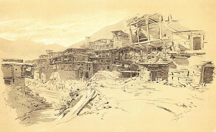 Аул на Кавказе. XIX век. Худ. Т. Горшельт.