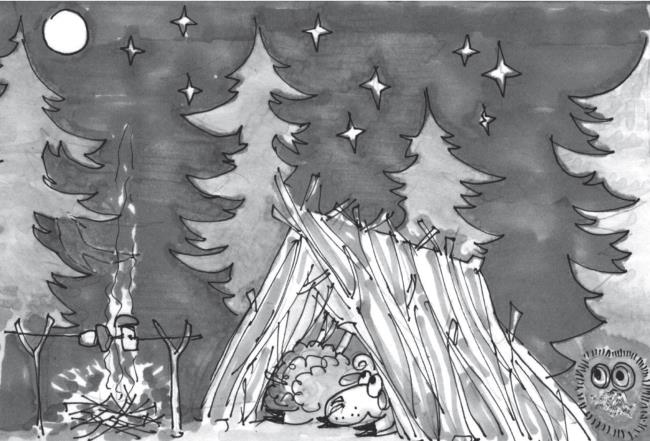 Чтобы добраться до волшебной печки, им пришлось заночевать в лесу. Дедушка ловко сделал шалаш из веток деревьев, сложил в него вещи, постелил мягкой травы себе и Пете, и они легли спать. Дедушка сразу уснул, а Пете не спалось.