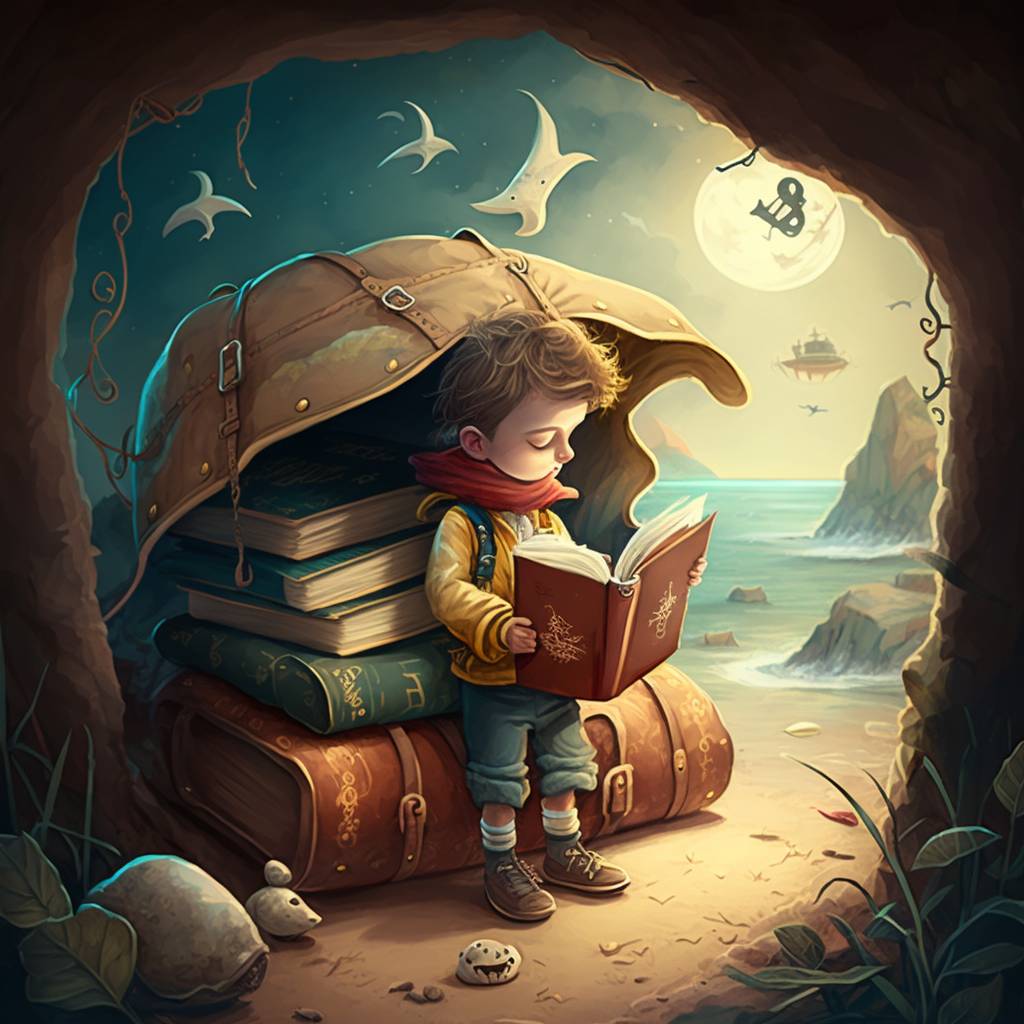 Эта книга будет о маленьком мальчике по имени Джек, который мечтает найти сокровища. Он решает отправиться в опасное и захватывающее путешествие на поиски затерянной пещеры или острова сокровищ, где он надеется найти богатство и славу.