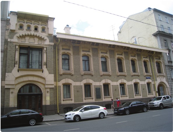 Это изящное здание в Трехпрудном переулке связано с любопытной страницей биографии Сергея Есенина Маленькая типография в Рахмановском переулке к концу ХIХ века выросла в довольно крупное производство. Для его дальнейшего расширения был куплен участок в Трехпрудном переулке (дом 9). Проект заказали знаменитому архитектору, живописцу, сценографу Федору Осиповичу Шехтелю, который давно сотрудничал с типографией в качестве художника. Он слыл лучшим виньетистом, свое пристрастие к этому виду книжных украшений мастерски воплощал и в орнаментах чугунных оград, непременно окружавших его каменные шедевры в стиле модерн. Проект зданий Товарищества «Скоропечатня А.А. Левенсона» получился замечательный. На красной линии переулка расположился сказочный замок с помещениями для издательства, редакций, кабинетов руководства. За спиной замка цеховые помещения более строгих очертаний, кладовые для бумаги, красок и других материалов. Техническое оснащение типографии по последнему слову!
