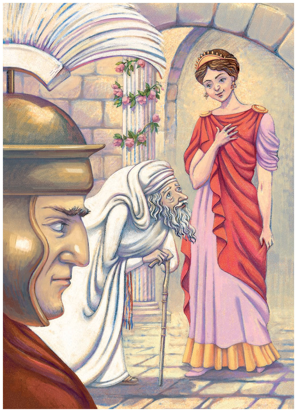 В богато изукрашенной колеснице, запряжённой белыми конями, в пурпурной с серебром упряжи, медленно ехала прекрасная, но гордая и заносчивая Принцесса. Когда умолкла приветственная песнь и Принцесса вышла из колесницы, на встречу ей торжественной процессией двинулись раввины. Впереди шёл знаменитый мудрец Иехошуа бен-Хананиа.