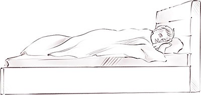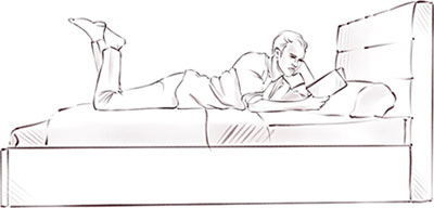Опишем другую ситуацию кровать и человека, лежащего на ней (Рис. 7). Что скажем о положении этого человека по-английски?