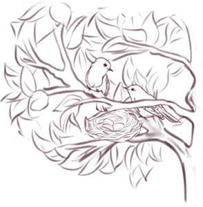 Давайте представим два дерева и птиц, свивших гнезда на каждом из них. В одном случае мы скажем по-английски The birds are on the tree (Рис. 1), в другом случае скажем The birds are in the tree (Рис. 2).