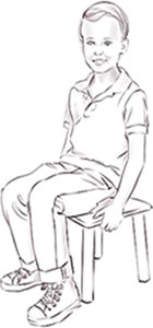 Теперь ответим на вопрос, где сидит мальчик. The boy is sitting on the stool.