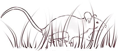 Last month the mouse ran on the grass. Today the mouse is running in the grass.